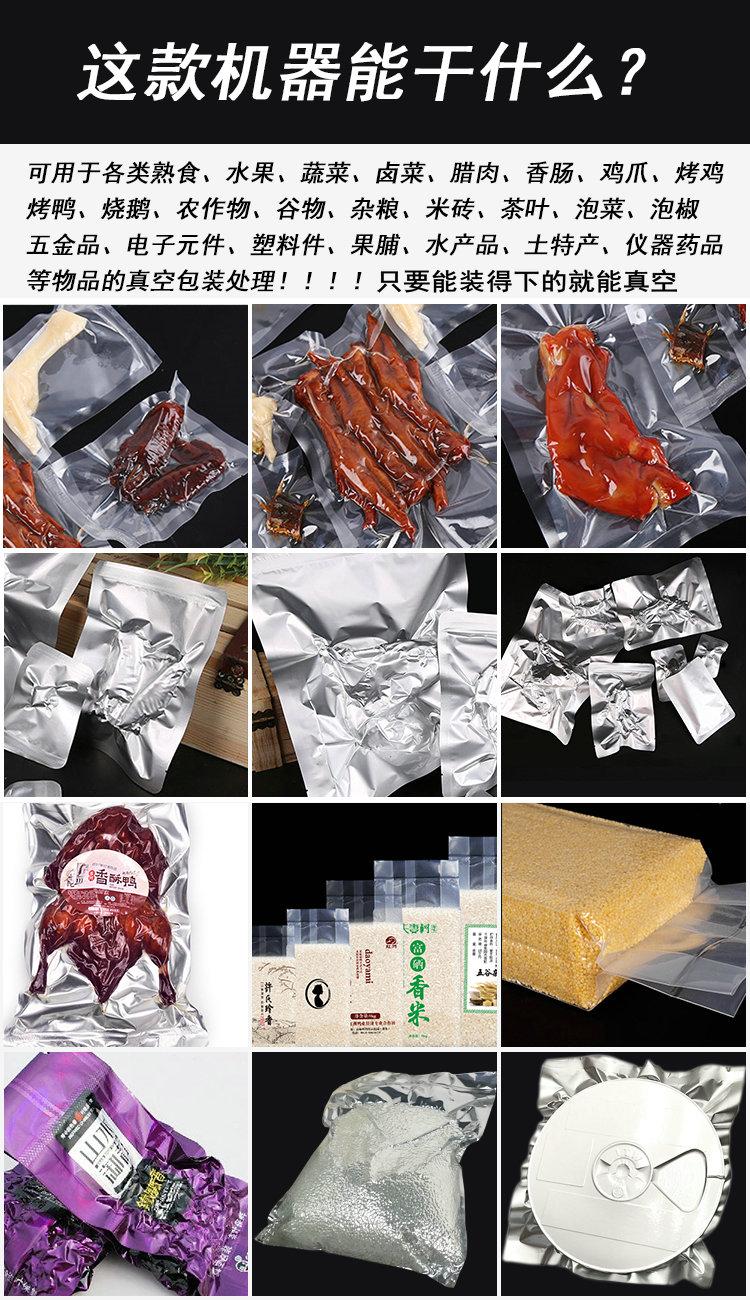 3、本機蓋采用全透明有機玻璃,對包裝過程一目了然。本機具有抽真空、封口一次完成功能,對不同的包裝材料和包裝要求,該機設有真空度、熱封時間等調整裝置,以達到佳包裝效果。